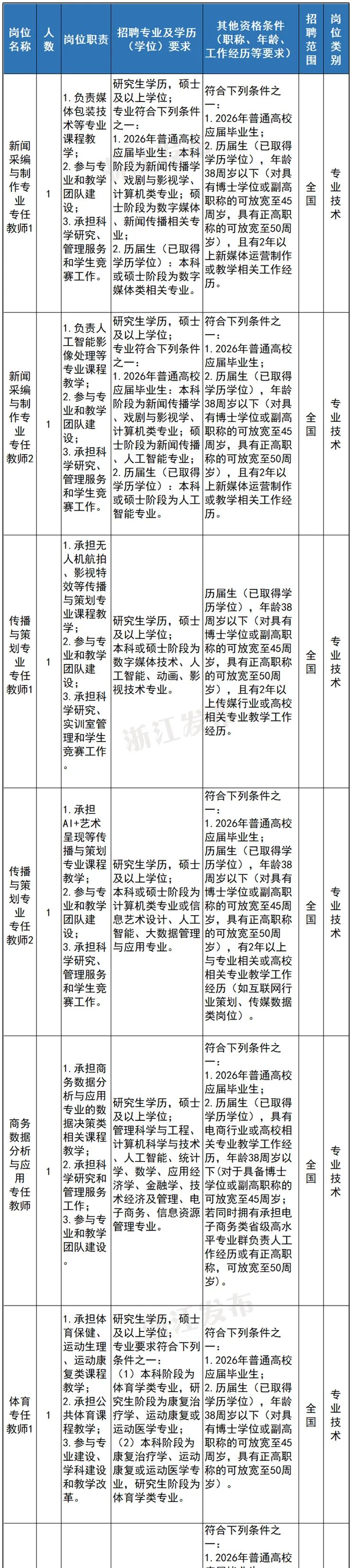 浙江纺织服装职业技术学院决定面向全国公开招聘人员6名。