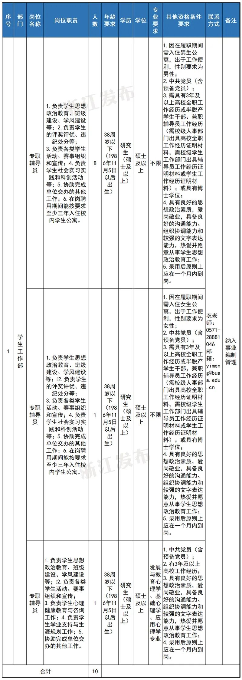 本次面向社会公开招聘工作人员10人(纳入杭州市报备员额事业编制)。
