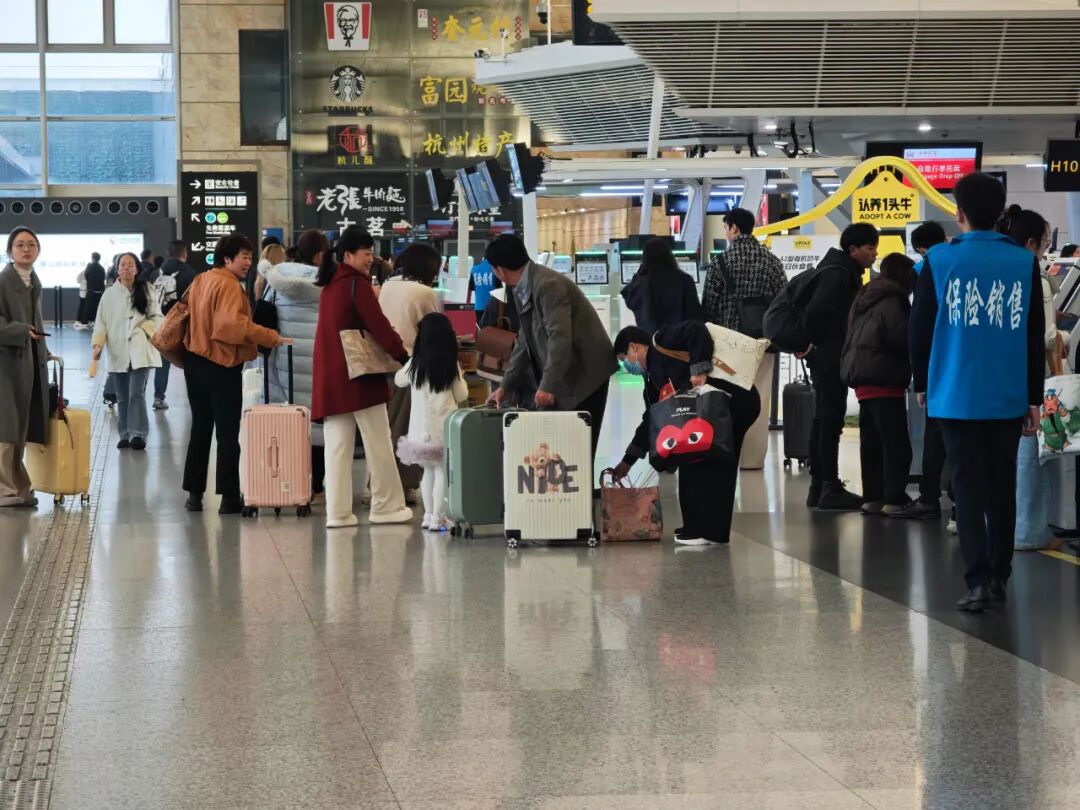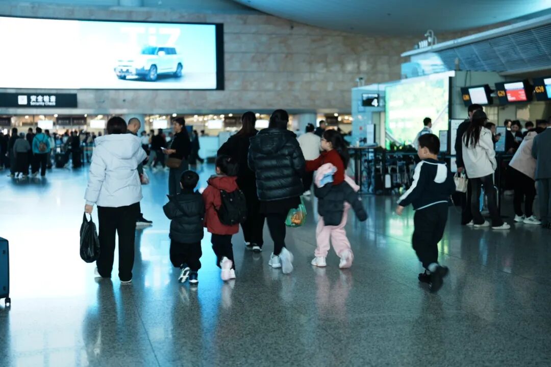 11月12日下午,杭州萧山国际机场的候机厅里,不少孩子脸上洋溢着期待与兴奋,家长们正在忙碌着值机。来自宁波的一家三口就是其中一例,楼先生带着妻子和女儿,准备飞往北京。