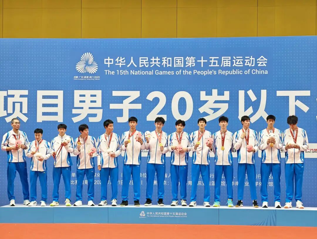 11月12日,广州华南农业大学体育馆内,随着最后一记重扣落地,浙江U20男排的小伙子们在粤港澳全运会决赛中,以3-1(29-27、20-25、25-23、25-21)击败江苏队,将这块期盼已久的金牌收入囊中,终结了此前连续两届全运会屈居亚军的遗憾的同时,斩获浙江男排全运会历史上的第一枚金牌。