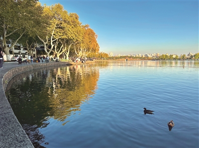 昨天下午,北山街,晴空暖阳,西湖边秋色如画。 记者 陈中秋 摄