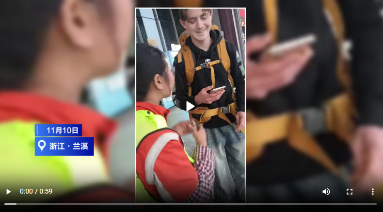 11月10日傍晚17时20分,浙江交通集团兰溪服务区衢州方向的广场上,一名背着行李包的外国小伙攥着手机,满脸焦急地向周围人比划——他刚被送自己的车辆留在服务区,本想从上海一路搭车感受中国沿途风光,却因语言不通陷入“求助无门”的窘境。