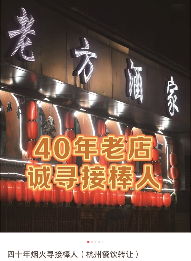 店铺最大的亮点是“老方酒家”的金字招牌,40年老店,自带流量,曾被多家杭州媒体(都市快报、杭州吃什么等)报道,口碑与客源的双重保障。招牌可直接使用,价值无法估量。