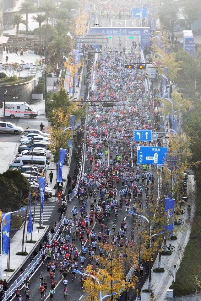 杭州新闻讯 11月16日7:30,2025建德马拉松鸣枪开跑。7000余名中外选手从建德市博物馆出发,呼吸着17℃新安江水滋润的清新空气,奔竞在镶嵌于秀美山水间的新安绿道上,分别完成全程马拉松和半程马拉松两个项目的“润肺之旅”,这也是建德市连续第七年举办这项获中国田协认证的A类马拉松赛事。