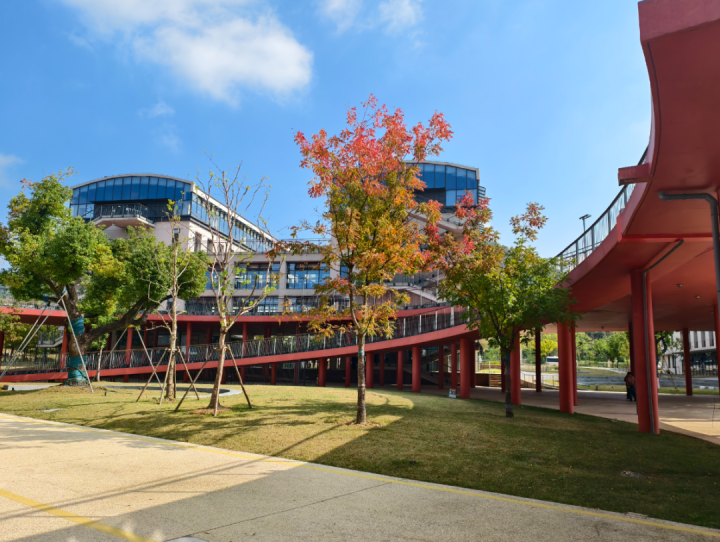 这里共有4幢教学楼,1号楼设置了文艺舞蹈类和亲子早教类课程,2号楼是科技学能类和体育健身类课程所在地,3号楼是双子楼,中间有连廊过道,书画美劳类、文学思维类和国际文化类课程分别安排在这里,4号楼是运动馆。