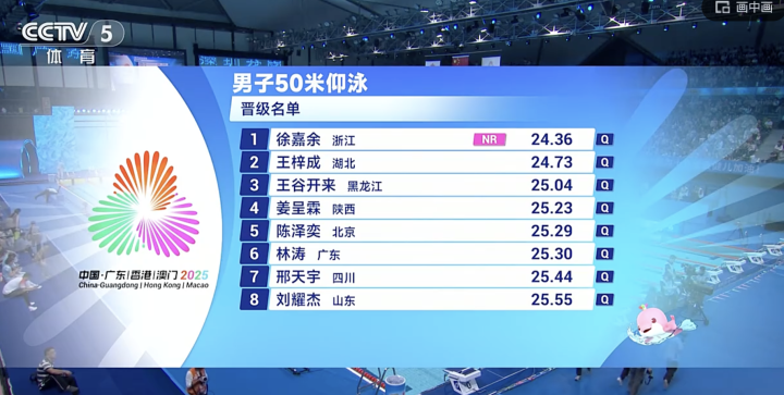 50米仰泳半决赛就破了全国纪录!徐嘉余:意料之中