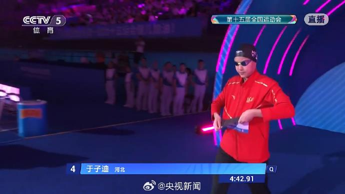 11月17日晚,第十五届全运会女子400米个人混合泳决赛,河北队13岁小将于子迪游出4分34秒33的成绩,夺得冠军。