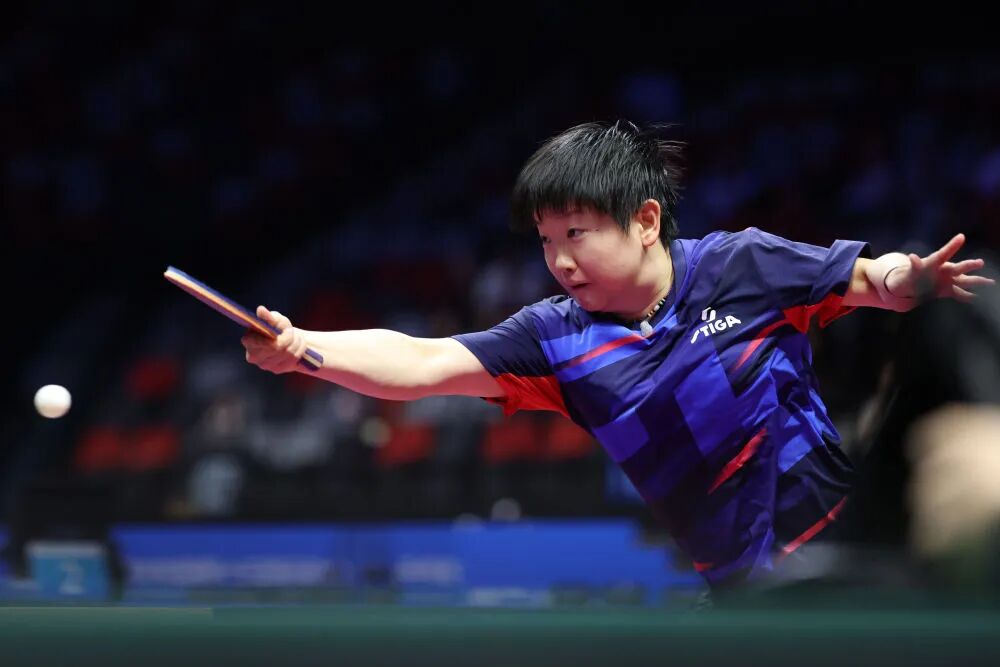 比赛开始,两人在前两局战成1:1。第三局,手握两个局点的孙颖莎痛失机会。第四局,王曼昱再拿一局,大比分3:1领先。
