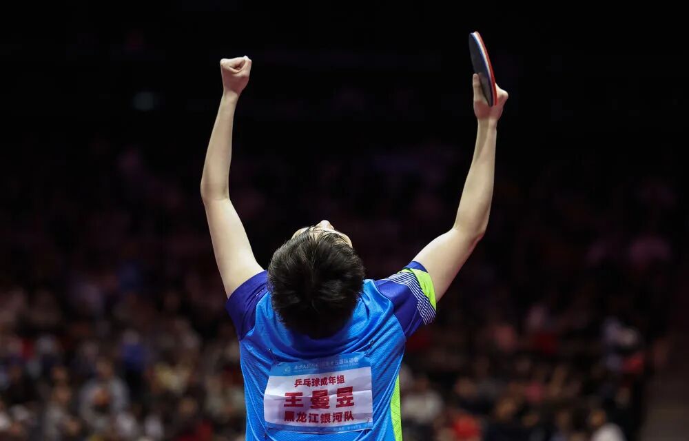 此时,孙颖莎先追一球,9:10。就在人们以为逆转好戏又要上演时,王曼昱果断叫下暂停。暂停归来,决定比赛走势的关键一球上演:孙颖莎发球,两人形成相持,王曼昱反手发力上台,兑现金牌点。