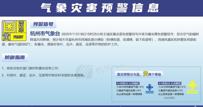 注意防冻防护!杭州升级霜冻预警信号