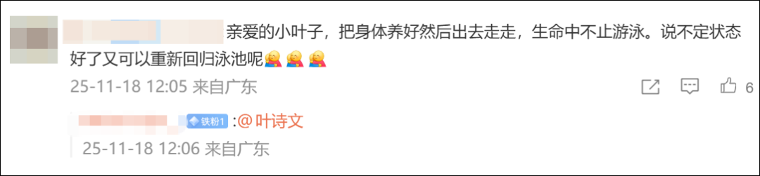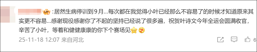 这条微博下,网友的祝福和鼓励挤满了评论区,“等着和健健康康的你下个赛场见!”