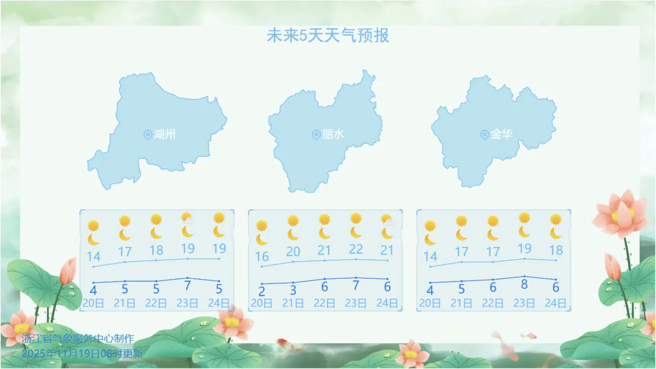 下周伊始,受弱冷空气影响,浙江有降温和沿海大风过程。
