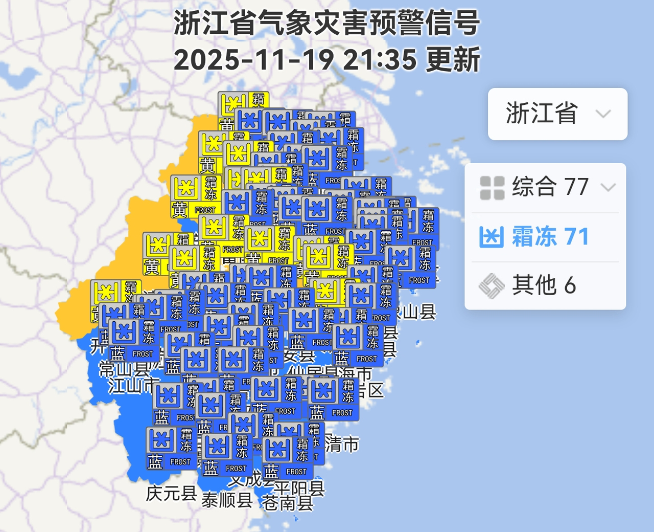 今天(11月20日)清晨,不少早起的浙江人又被天气打个措手不及。