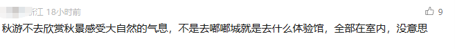 还有家长吐槽,如今很多学校都把秋游的目的地定在体验馆等室内地点,但秋游应该要欣赏秋景,感受大自然的气息才对。