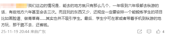 这一说法得到了许多网友的认同,现在的秋游,总是要和研学挂上钩,需要家长出一定的费用不说,到头来目的还是让孩子学。