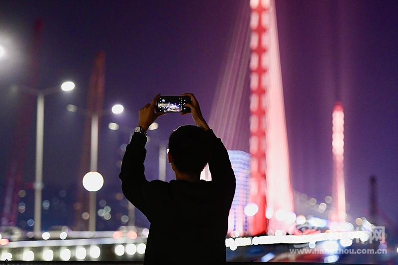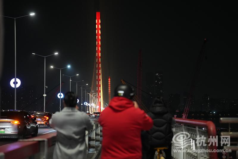 像他这样的市民还有很多,匝道前、渡埠边,大家纷纷在夕阳下与桥身合影留念。工程师刘勇专程从上海赶来现场,他既亲眼见证了三桥通车,又曾参与钱江新城的设计建设。“那时的钱塘江两岸还是农田和滩涂,这座桥孤零零地跨在江上,红白相间的桥身,看着格外有时代跃动的活力。”