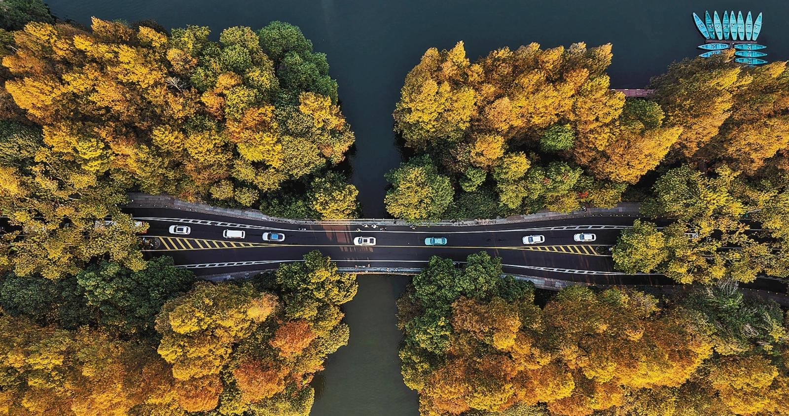 11月21日拍摄的西湖景区杨公堤附近的景色