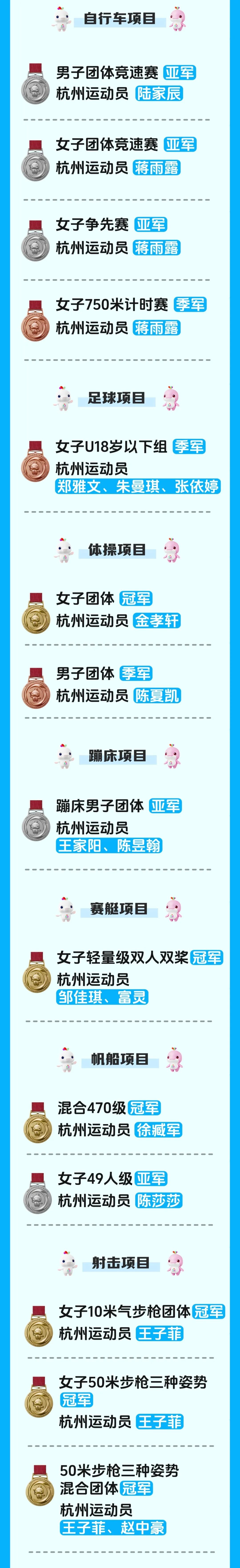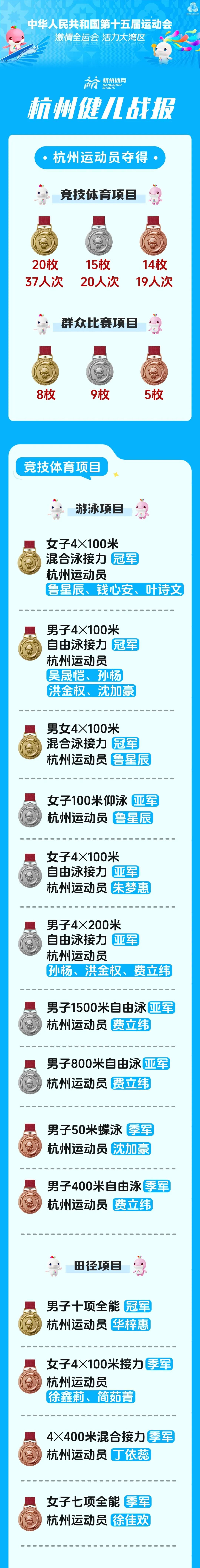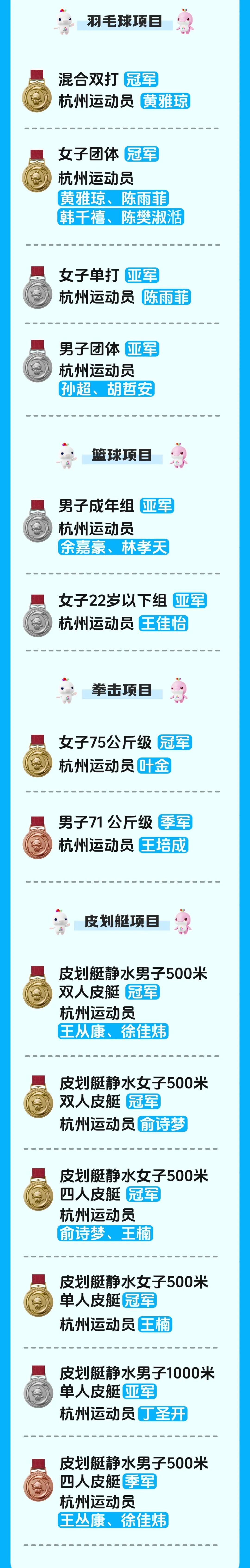 28金24银19铜!杭州健儿闪耀赛场
