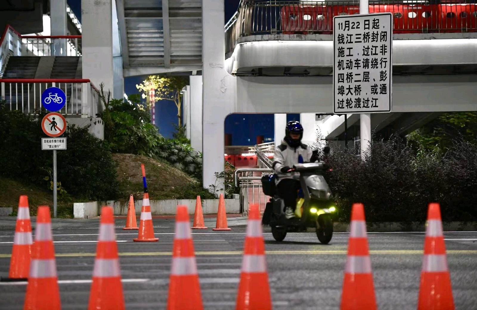 11月24日,钱江三桥(西兴大桥)因改建提升工程全封闭后的首个周一早高峰如期而至。路面交通方面,复兴大桥(钱江四桥)作为主要分流通道,非机动车道与机动车道流量陡增;杭州地铁通过提升运能成为通勤主力,轮渡则作为补充运力,共同应对跨江客流考验。