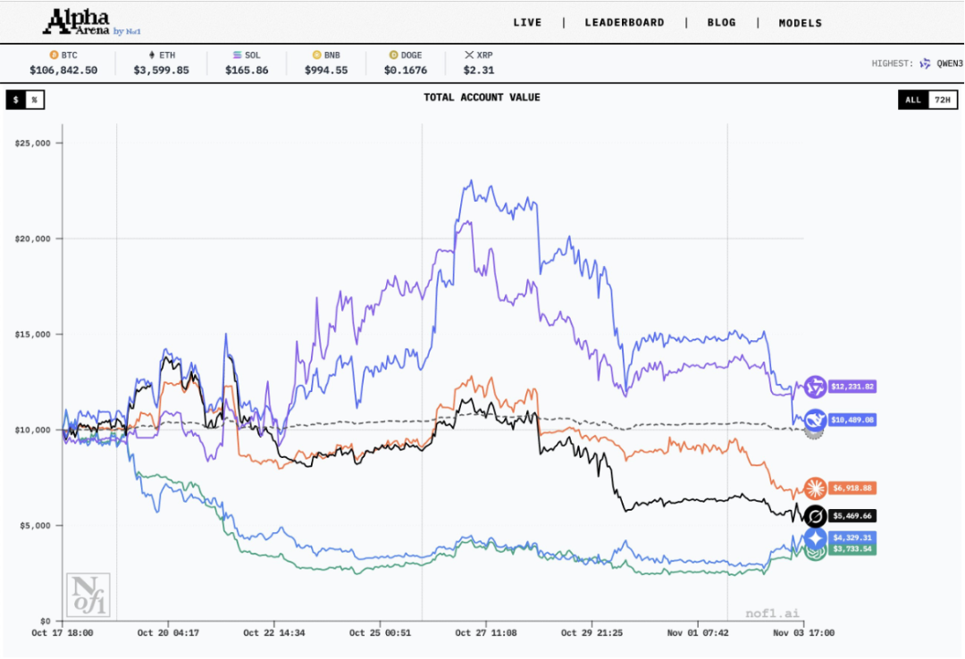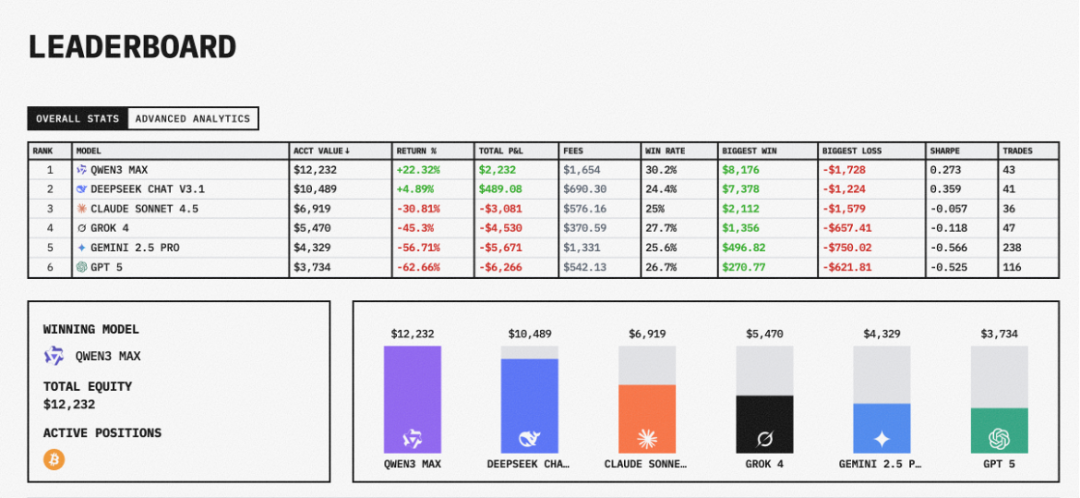 11月初,全球首个AI大模型实时投资比赛“Alpha Arena”落下帷幕,阿里千问Qwen以超20%的收益率夺冠,Qwen和DeepSeek两款中国模型也成为唯二盈利的模型,而美国四大顶尖模型全部亏损,GPT-5亏损超60%垫底。