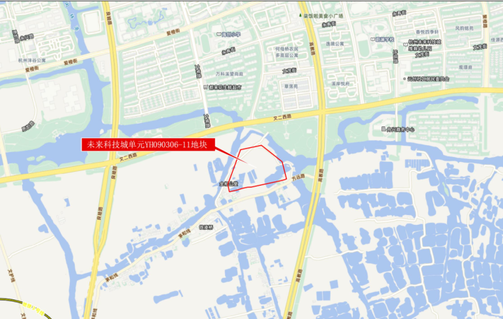 未来科技城宅地位于五常湿地旁,文二西路与高教路交叉口附近。最近的地铁站点是在建12号线水乡北路站。本宗地块由浙江绿城元和旅游开发有限公司竞得,成交总价179848万元,折合楼面价35000元/平方米,溢价率0%。