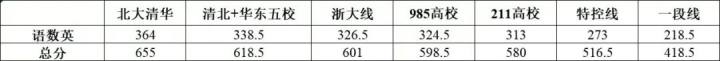 另外,赋分表里还特别列出语数英三门的分数线,这个一看她更着急了,女儿的这三门总分特控线都不到。