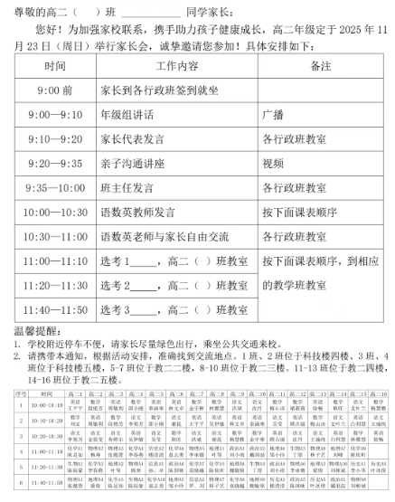 家长会9点开始,议程排得满满的,每个家长都收到了一份详细的邀请函。前面先在行政班里用广播的形式收听年级主任讲话,紧接着就是班主任做分享介绍班级总体情况。
