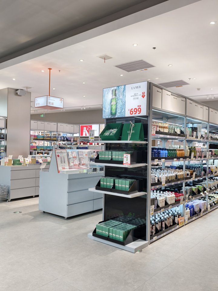 美妆区的海蓝之谜精粹水699元,兰蔻小黑瓶接近5折、娇兰的复原蜜不到400元,兰蔻粉水不到200元,这里的导购很专业,会详细介绍产品的保质期和适用肤质,完全没有推销感。