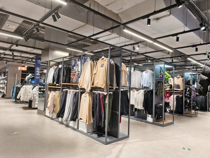 上到2楼就是运动和服装区,瞬间切换到“自助式购物”模式,Nike、Adidas、北面的款式很多,价格也大多维持在1-3折。