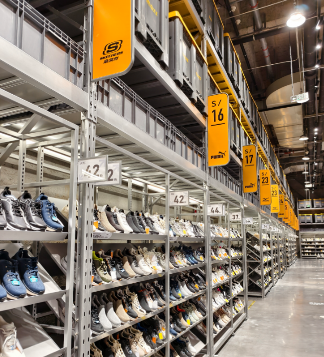 卖场在2楼,刚进门就被近万平方米的空间惊到,最外面是奢侈品和热门运动鞋服区,里面运动品牌鞋子的货架直接摆到顶,没有多余装饰,更像一个大型品牌仓库,完全是“自助式淘货”的感觉。