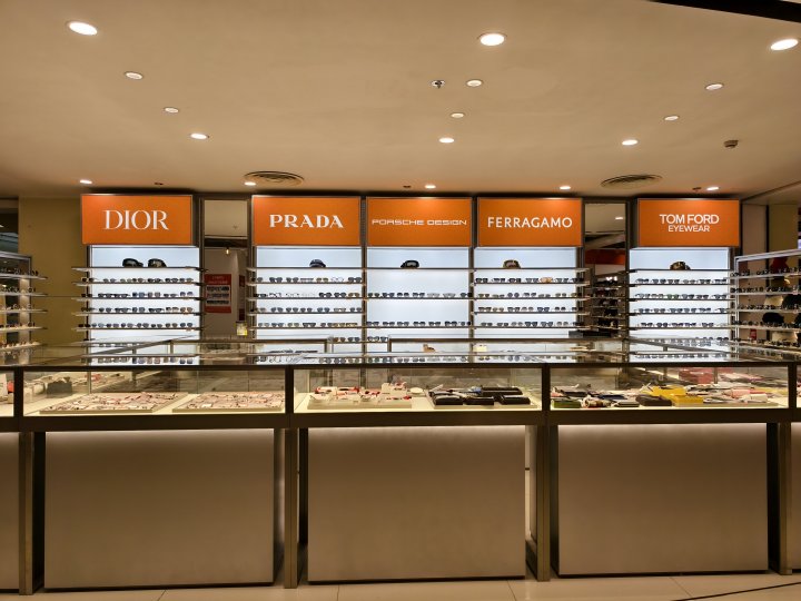 这里主打奢侈品和轻奢,Gucci、Burberry、Prada的陈列柜看得人眼前一亮,墨镜也列出了单独的一块区域,包包款式居然比想象中新很多,甚至有不少去年的热门款。