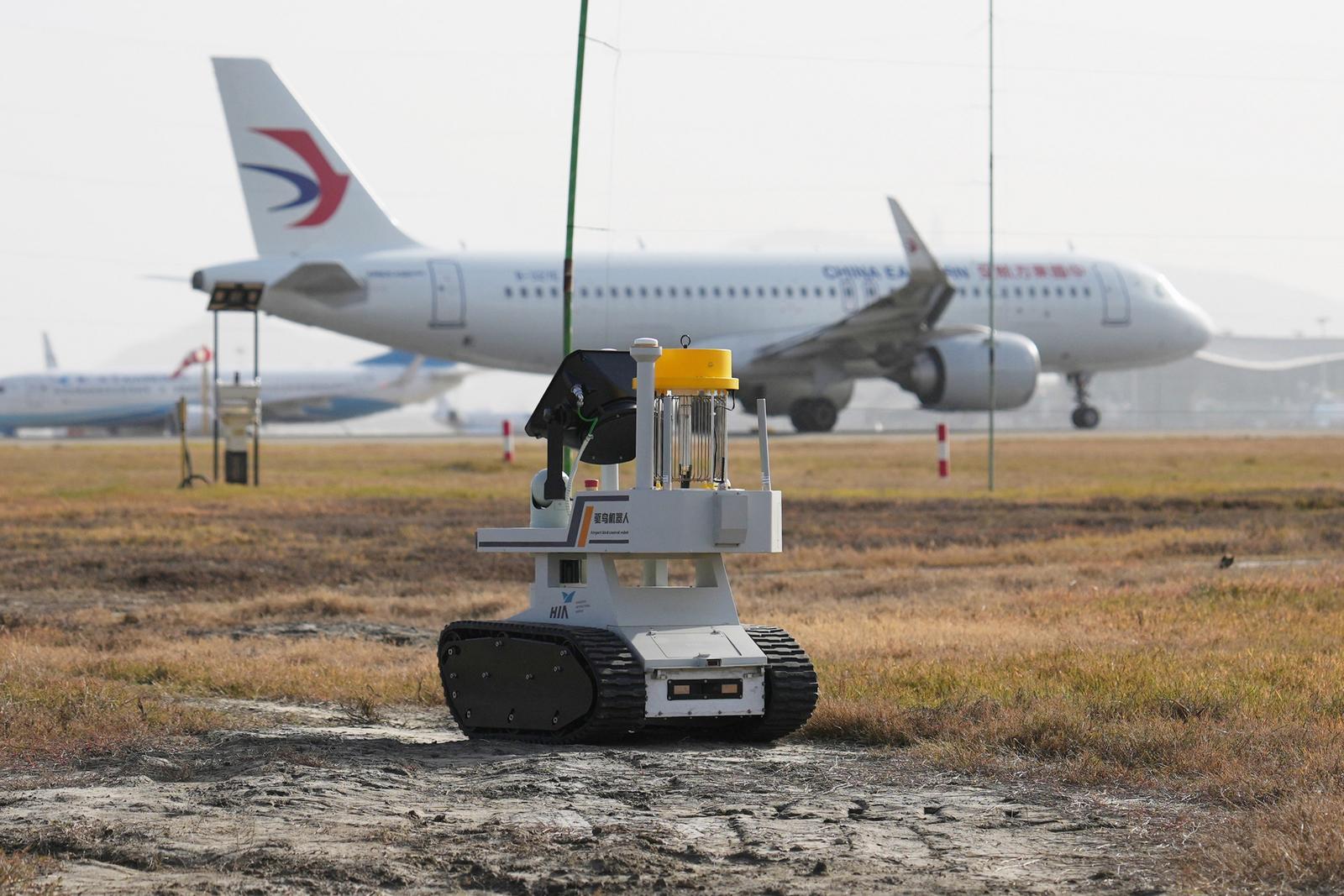 On November 25, China's first intelligent tracked bird-dispersal robot was operated at Hangzhou International Airport.