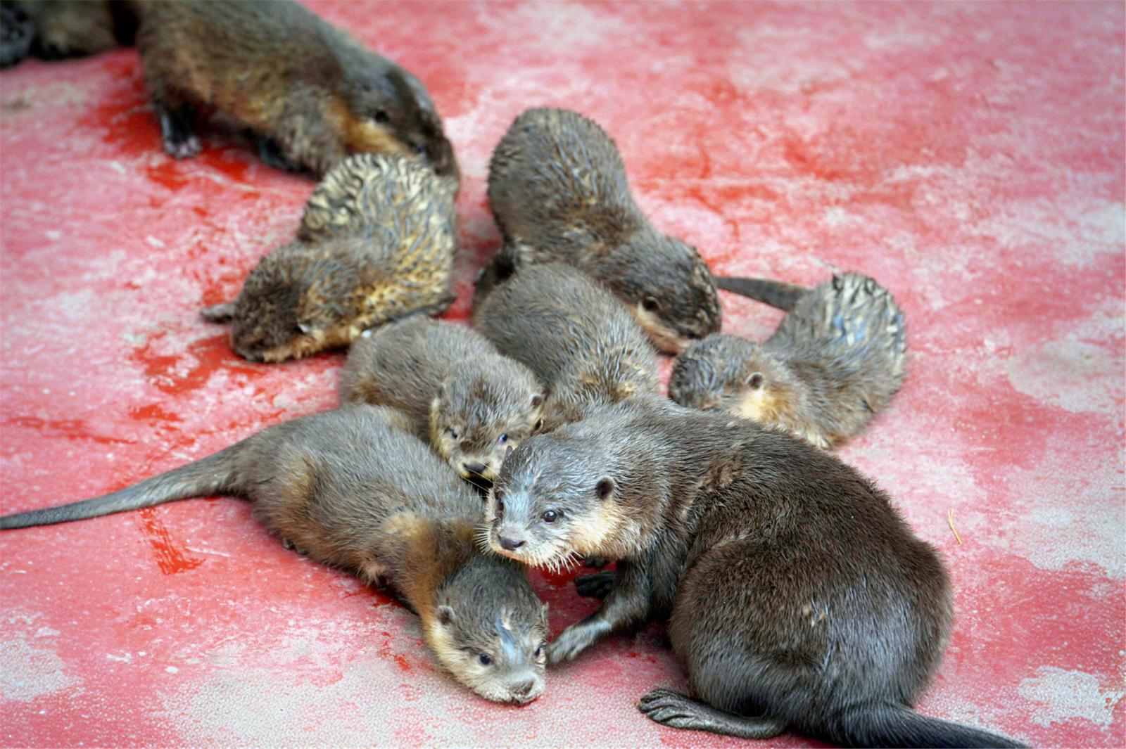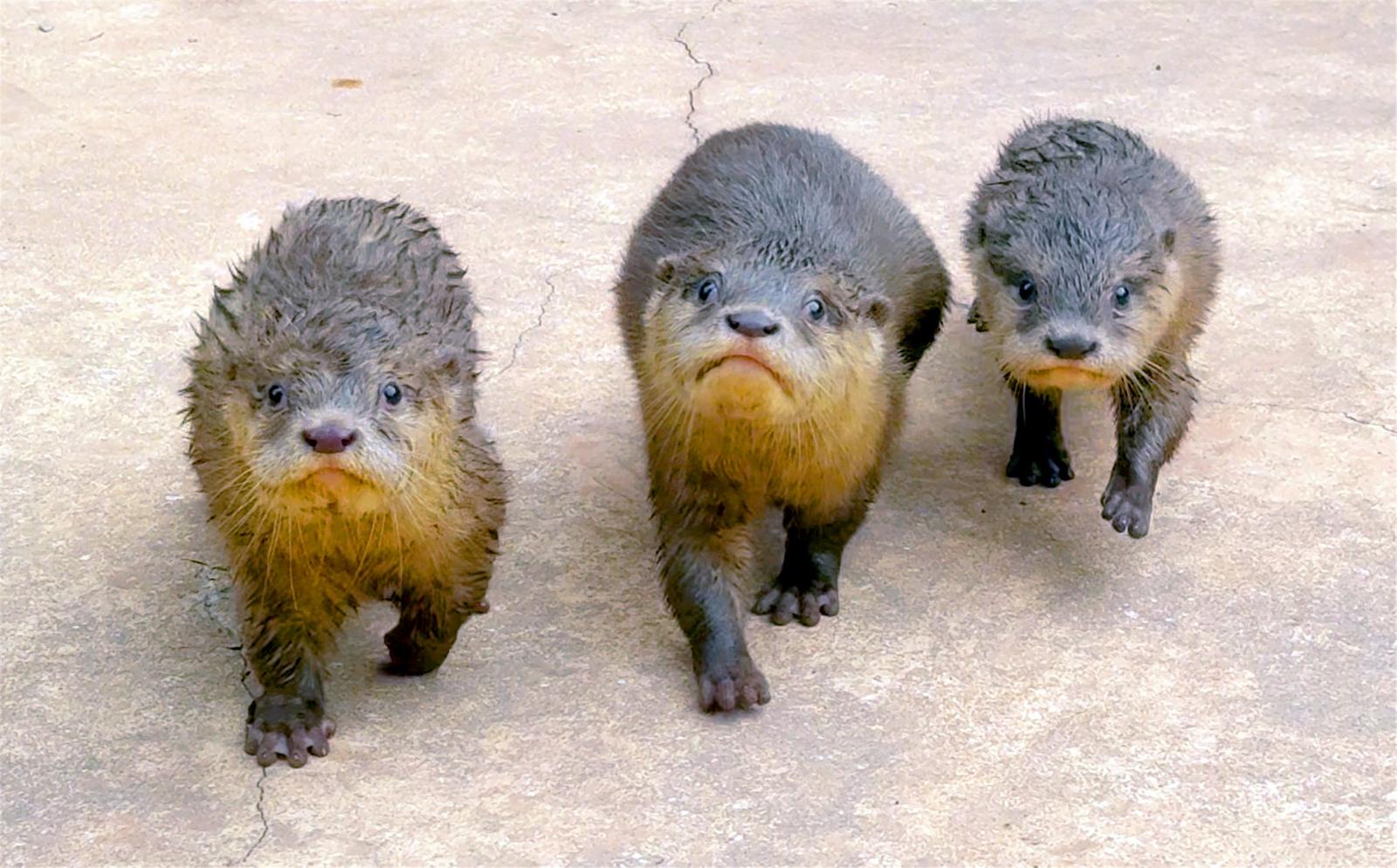 杭州野生动物世界诞生罕见水獭七胞胎 “葫芦娃”创纪录亮相