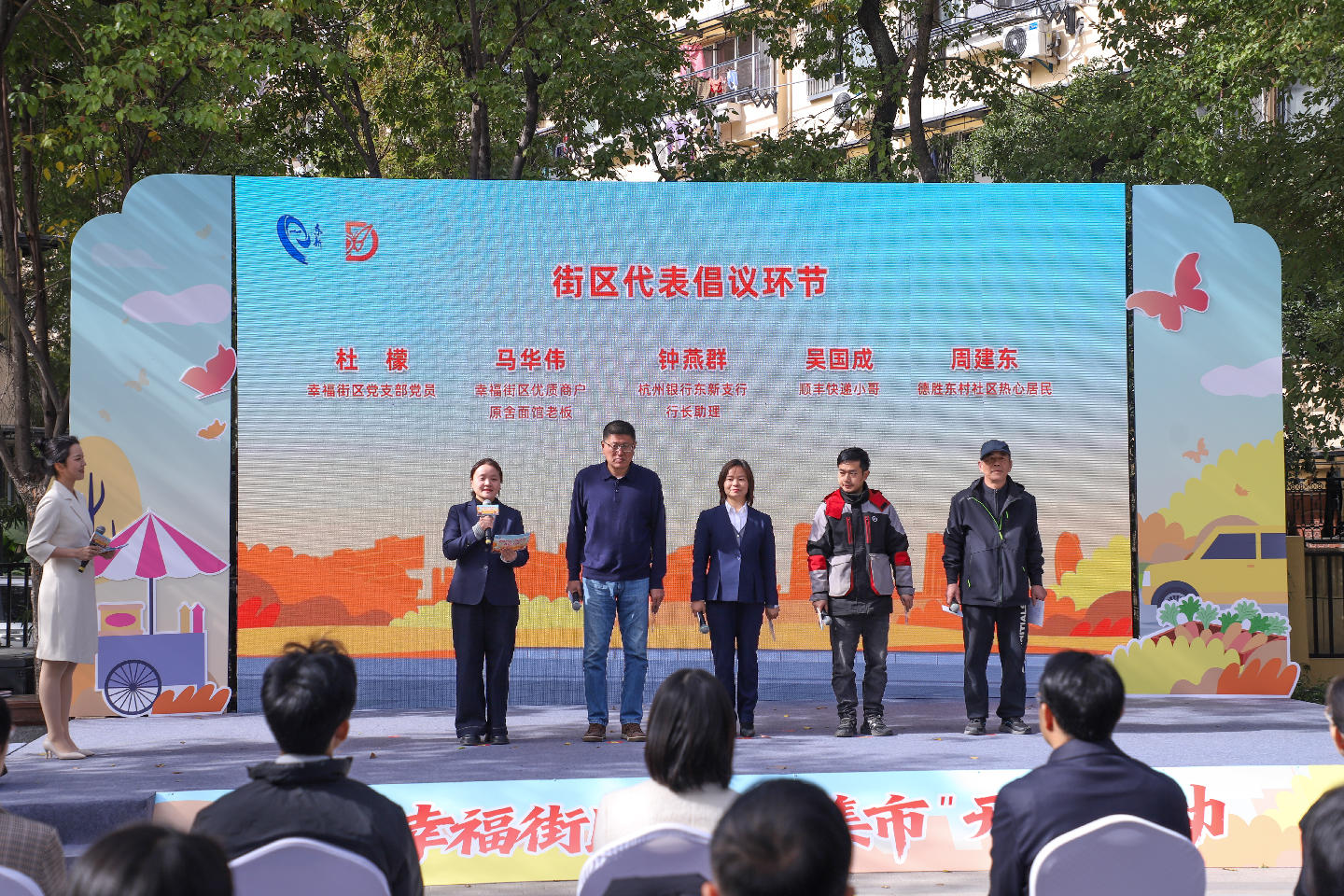 在启动仪式现场,街区党支部、商户代表、共建单位、快递小哥和居民代表依次登台,发出共建共治倡议。一句句朴实真挚的承诺,凝聚起“幸福合伙人”的责任与温度。