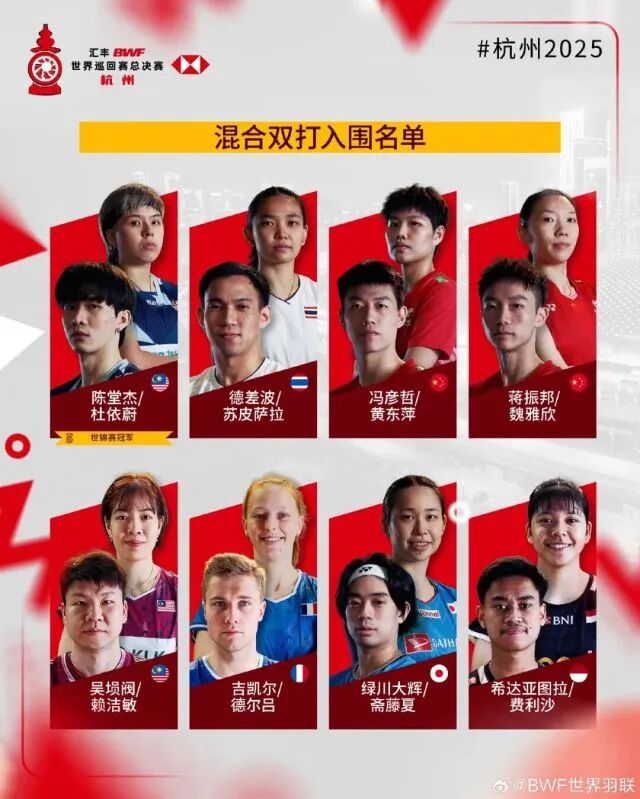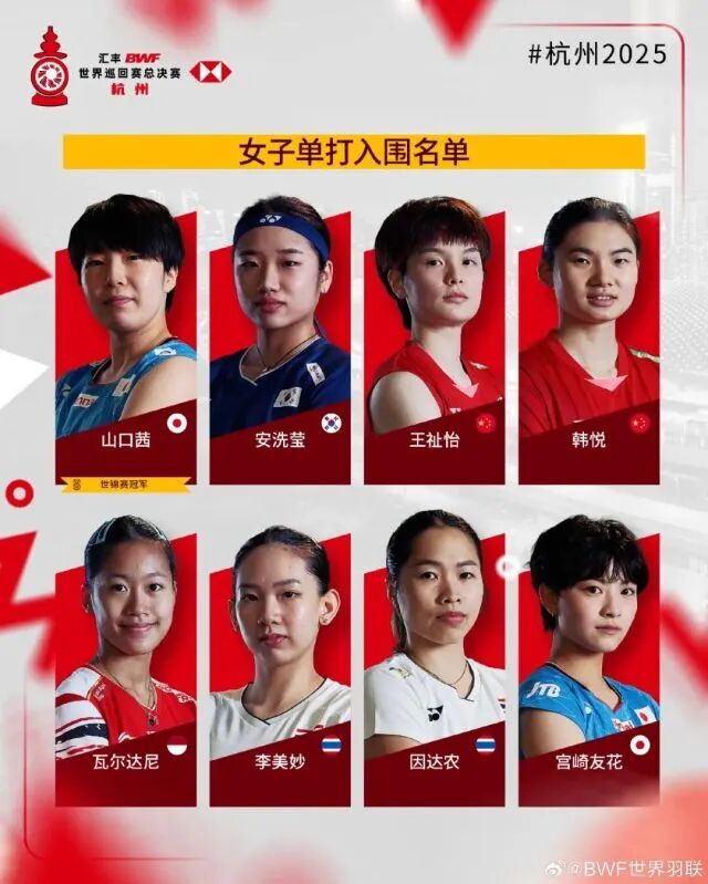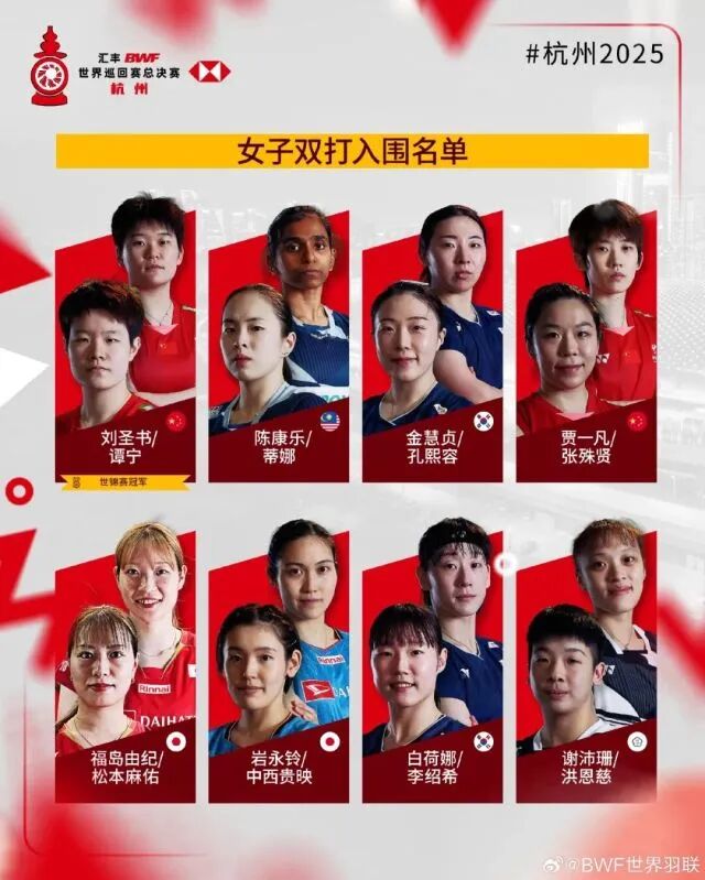 据BWF世界羽联消息,2025年世界羽联年终总决赛入围名单公布,各单项世锦赛冠军自动获得参赛资格。