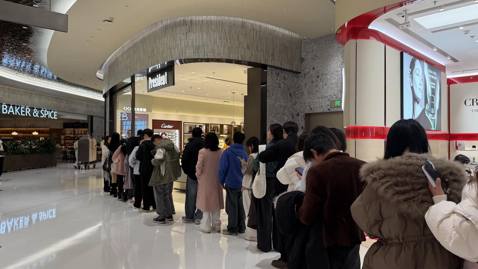 11月28日,杭州上城区万象城的夸克AI眼镜旗舰店体验专区迎来大量科技爱好者和普通消费者,排队人潮蜿蜒至转角。商城工作人员表示,许多消费者一大早就专程赶来体验新款产品,现场氛围热烈。