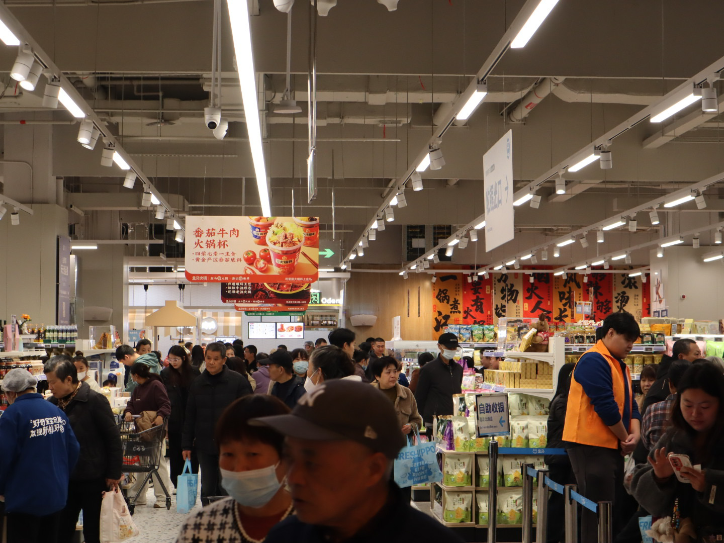 开业当天,两家新店人潮涌动,市民推着购物车穿梭于海鲜岛、水果区与火锅专区之间。随着寒潮来袭,杭州正式进入“火锅季”,而今年的消费趋势格外鲜明:养生锅底成绝对C位,网红商品强势回归,一人食新品精准击中都市人群需求,掀起冬日消费热潮。