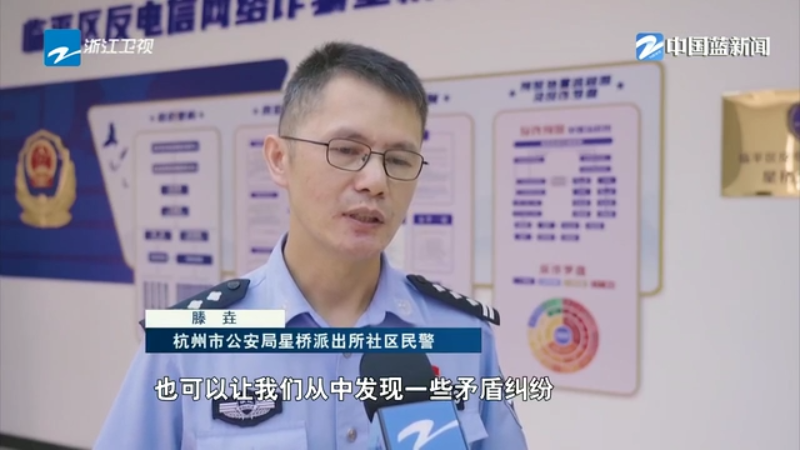 杭州市公安局星桥派出所社区民警 滕 垚:给我们跟群众打交道提供了一个平台,可以帮群众答疑解惑,也可以让我们从中发现一些矛盾纠纷,让我们快速去处置。