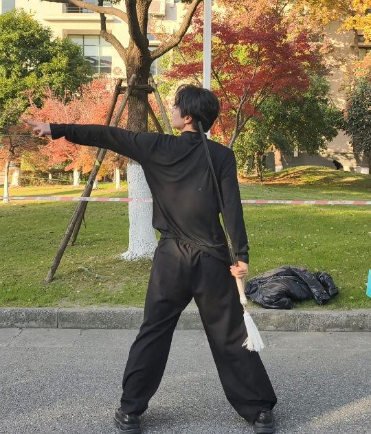 杭州考生吴同学介绍,表演专业考试有四个科目。首先是文学作品朗诵,接着是自选歌曲演唱和形体技能展示,他带了一把道具剑,配上一袭黑衣,颇有古代将士的感觉,在考场跳了一段剑舞。