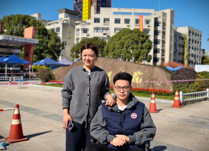 男生姓吴,来自嘉兴桐乡,个子看着就十分高大,虽然坐在轮椅上,但挡不住他身上扑面而来的阳光气息。