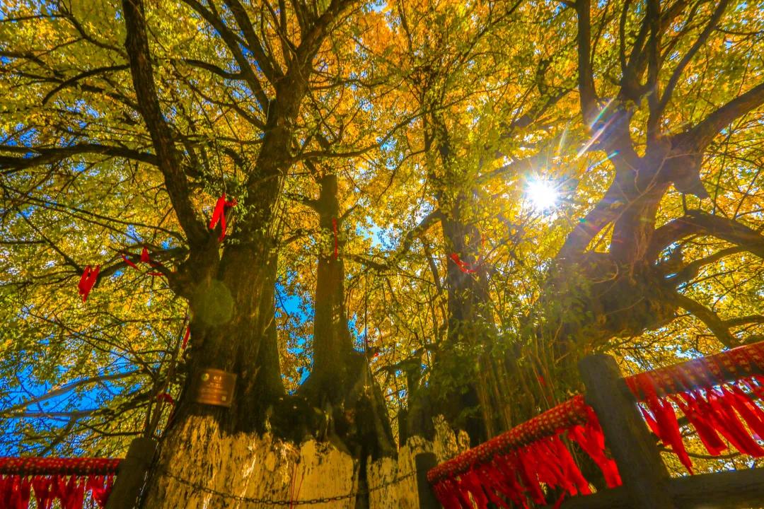 In Chun'an County of Hangzhou, the ancient ginkgo tree is about 1,360 years old, and enters the best viewing season. The golden leaves form a beautiful contrast with the nearby ancient temple architecture.