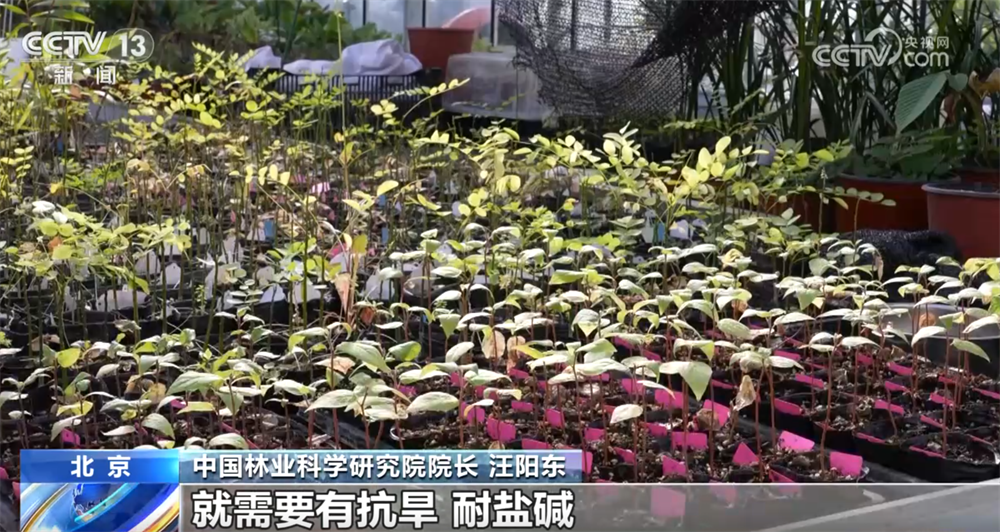 中国林业科学研究院院长汪阳东称:“我们需要解决的问题,主要是现在剩下是困难林地,像盐碱地,像‘三北’地区的干旱地,这些地方需要的品种就需要抗旱、耐盐碱,有些地方还要抗风。所以我们培育这些品种将来不仅是扩绿,而且还维持全球生态系统更加稳定、更加优化。”