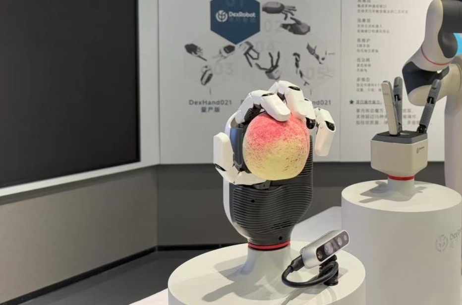 “你可以将手放在镜头前做动作,它能通过摄像头实时捕捉动态,复现人类手掌的细微动作。”该公司生产运营总监朱玉茅表示:人类的手可以做出33种不同的抓握动作,而这只重约1公斤(约两瓶水重量)的“手”已经可实现32个,从轻轻拿起一枚硬币到用力握住一个篮球,从精准地操作微小零件到灵活地完成复杂编织任务,灵巧手都能轻松应对,此外,它还可以根据感知的物体形状、大小和材质,自动调整抓握力度和姿势。