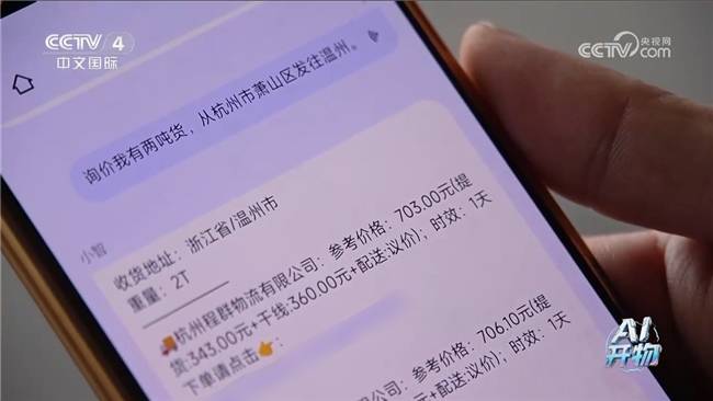 一名客户向智能客服提问:“询价,我有两吨货从杭州市萧山区发往温州。”随后,智能客服迅速整理,提供了多个物流公司的相关报价,并附上了下单链接。