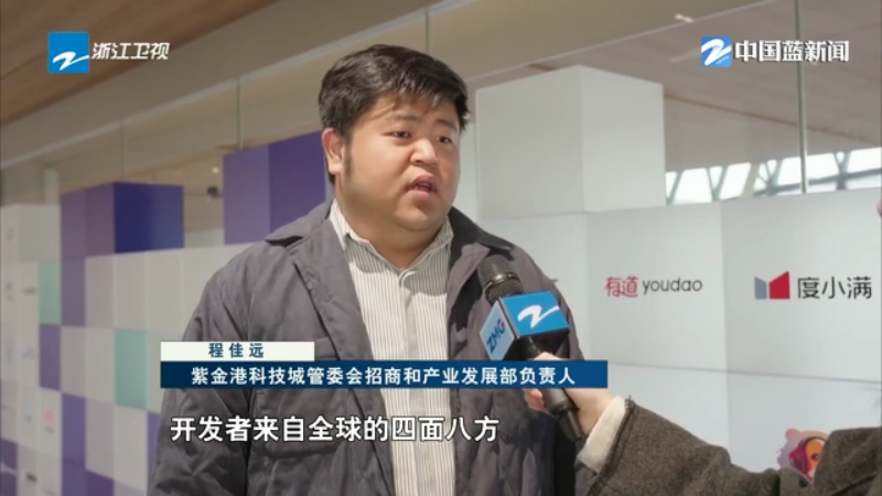 紫金港科技城管委会招商和产业发展部负责人 程佳远:开发者来自全球的四面八方,把他们如果全部聚集到线下的话,这个难度也是非常大的。