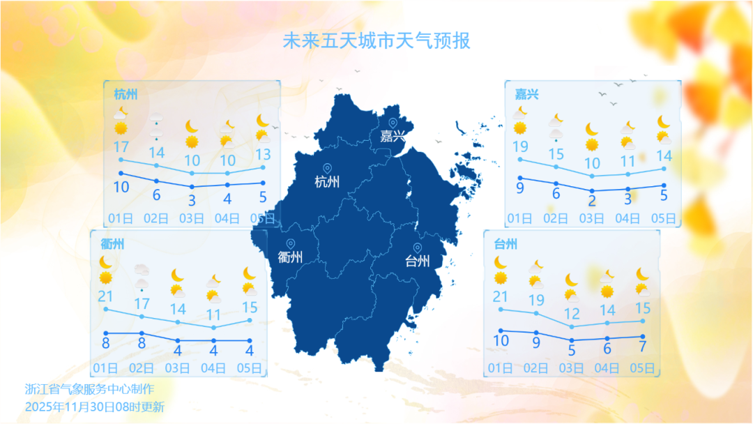这只是冷空气到来前的暖意“反扑”。今天(12月1日)开始,浙江升温戛然而止,三天内两股冷空气影响,大风降温弱降水都会登场。