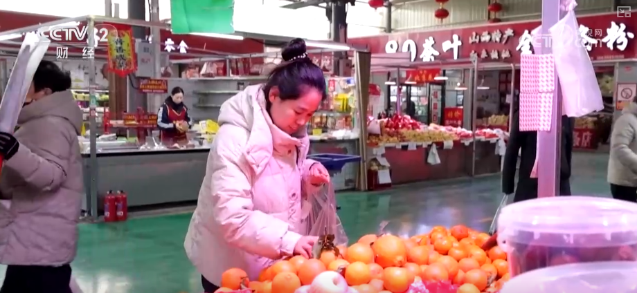 在山西太原市一家大型综合市场,橘子、冬枣等新鲜水果被摆在摊位的显眼位置,吸引消费者挑选。