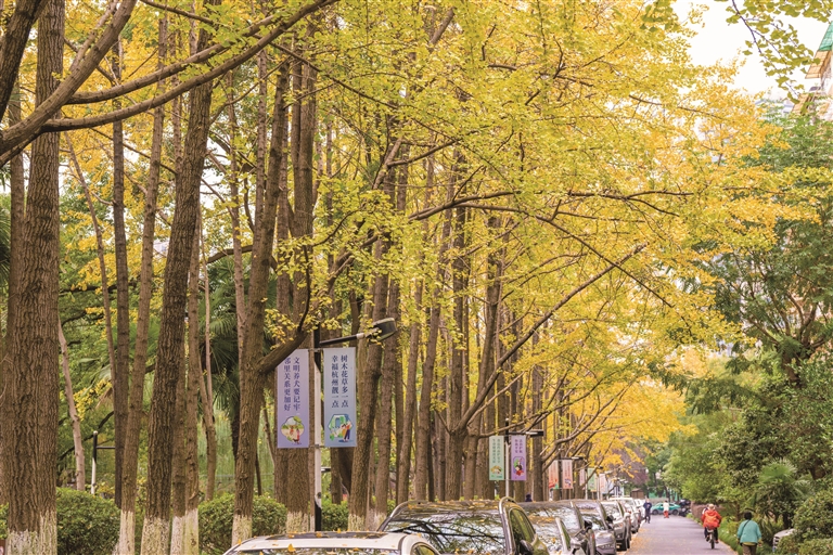 In early winter, the streets of Hangzhou are decorated with golden ginkgo trees, creating an especially romantic atmosphere. The ginkgo forest enters the best viewing season. The yellowing rate of leaves is further enhanced. Citizens can visit the ginkgo forest on sunny days to feel the golden poetic charm in winter. The picture shows the beautiful scenery of ginkgo trees in Zhaohui Park, Hangzhou.