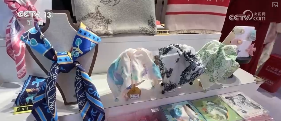 在新开的几家市内免税店,免税区专门设置了国潮区域,摆放了中华老字号商品、非遗产品以及国潮商品等,为游客提供了更多选择。