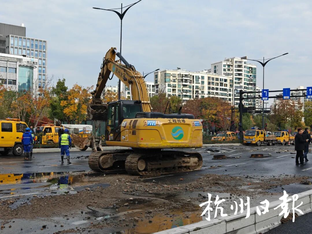 11 时 20 分,工程车进场,开始对事发路段进行挖掘,以便后续的检测。